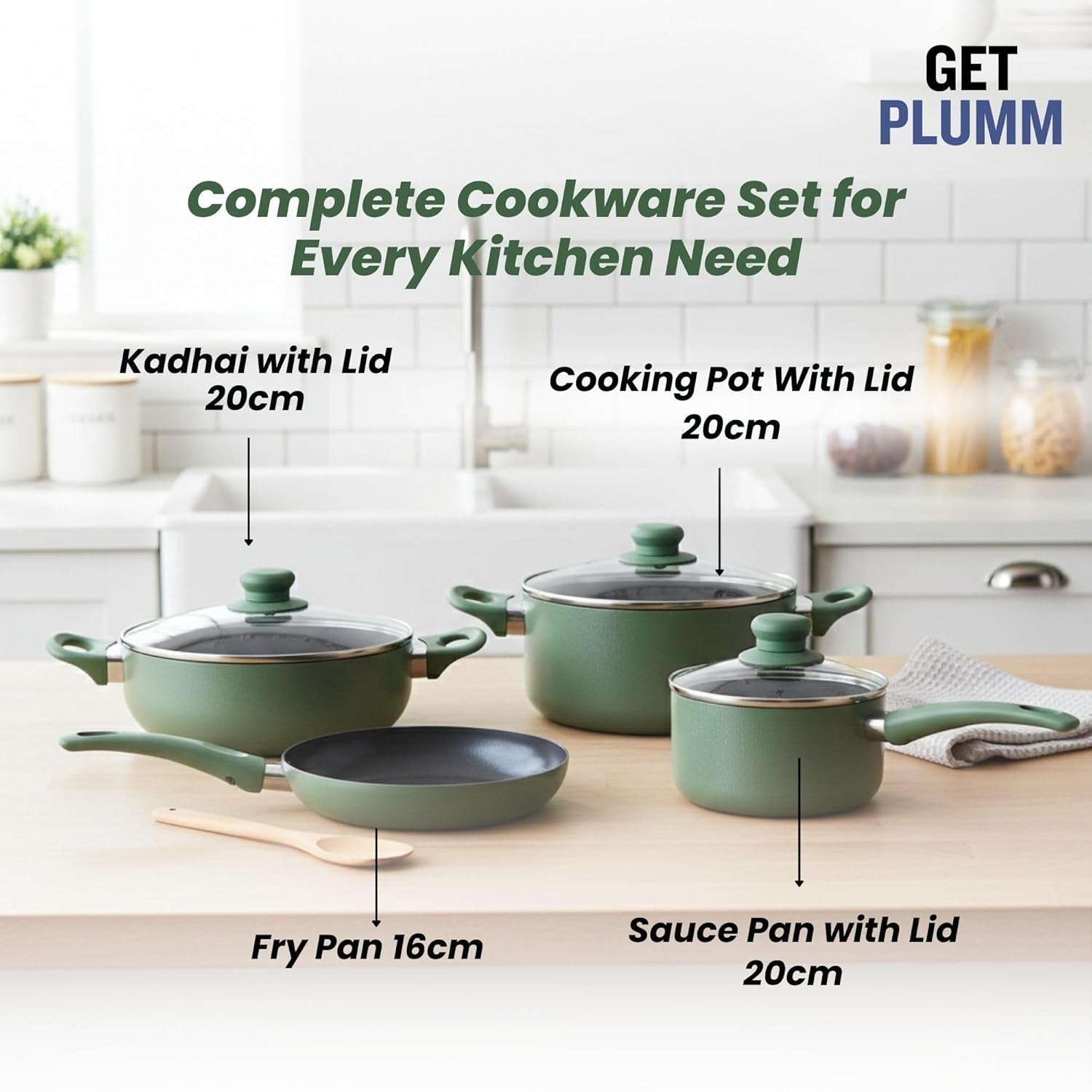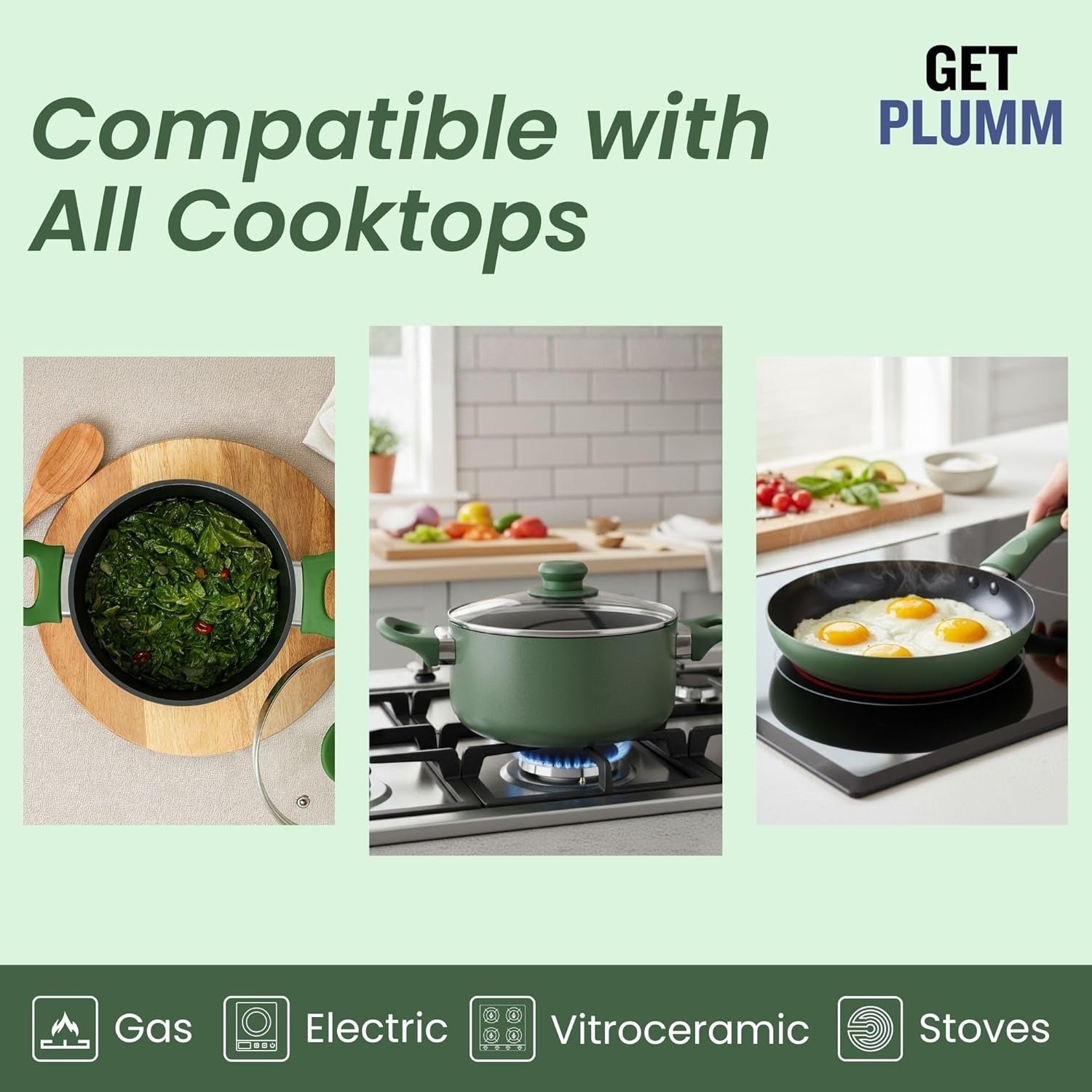 4-Piece Green Nonstick Cookware Set with Glass Lids – Induction Compatible Pots & Frying Pan Set