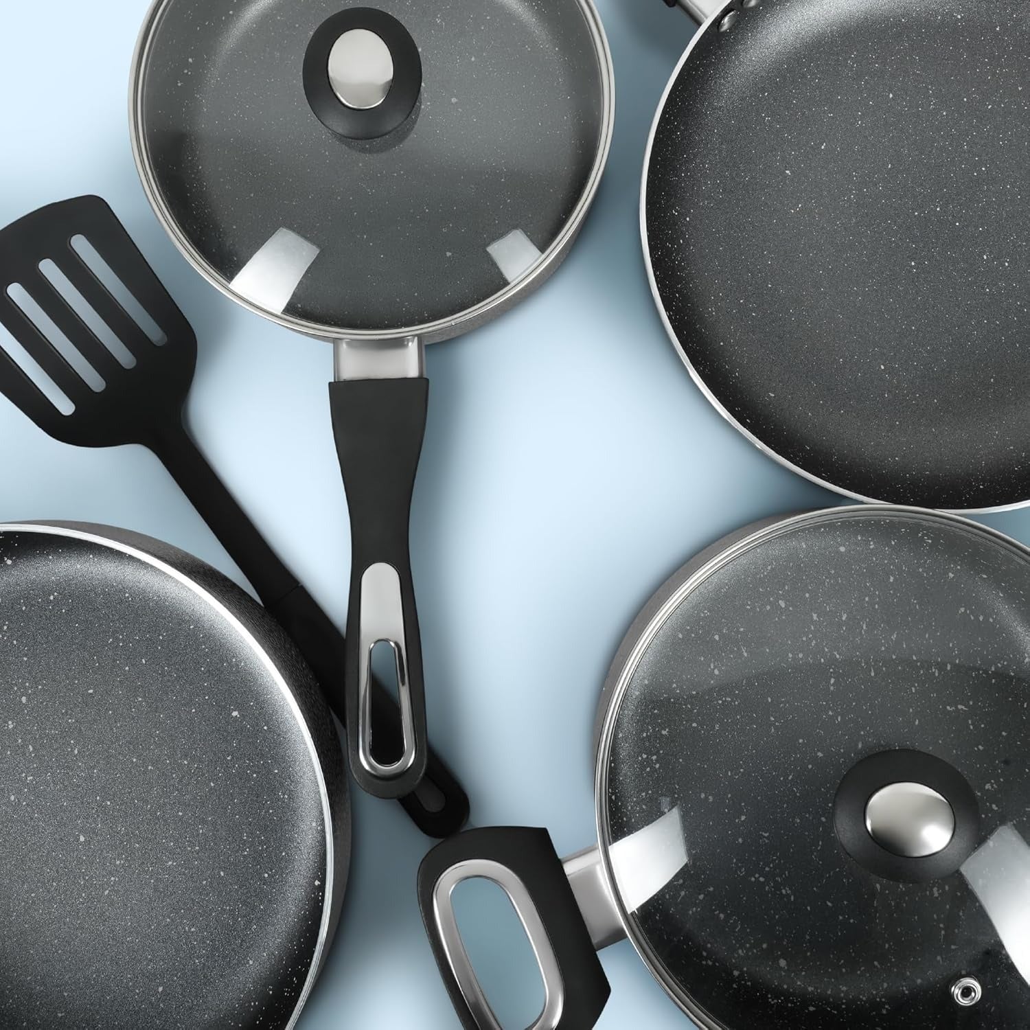 5-Piece Granite Nonstick Cookware Set with Glass Lids – Speckled Pots & Frying Pan with Utensil